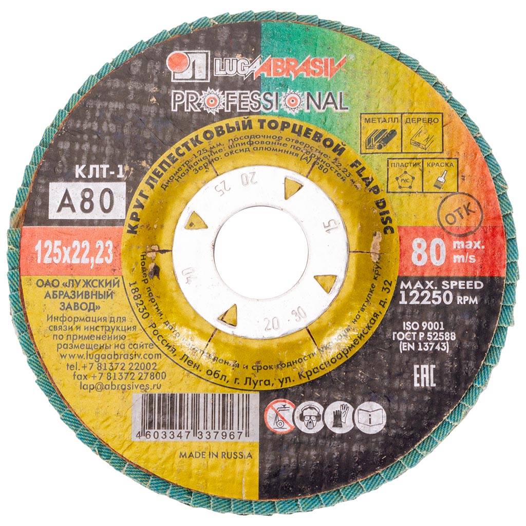 Круг шлифовальный лепестковый Луга, 125х22.2мм, Р80, торцевой
