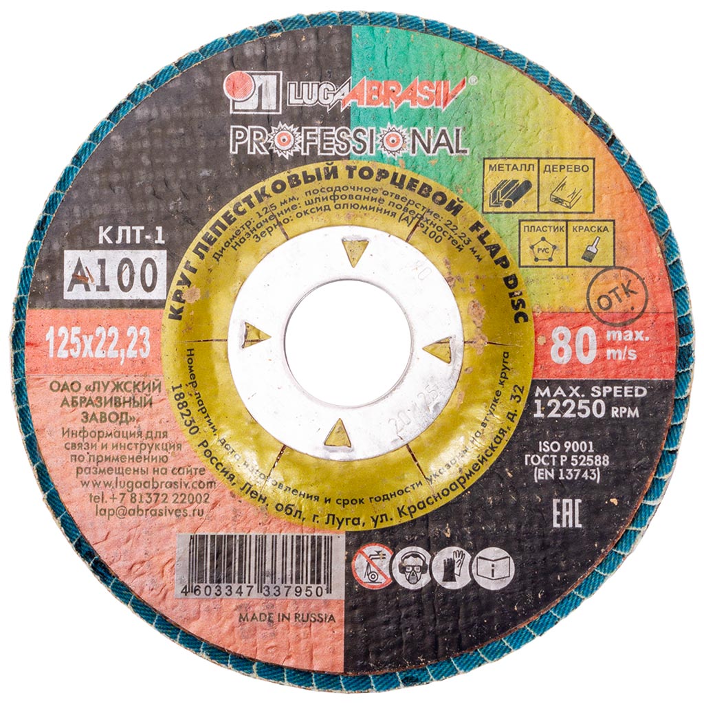 Круг шлифовальный лепестковый Луга, 125х22.2мм, Р100, торцевой
