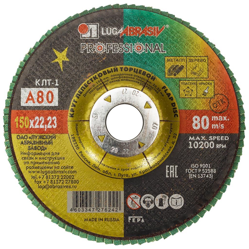 Круг шлифовальный лепестковый Луга, 150х22.2мм, Р80, торцевой
