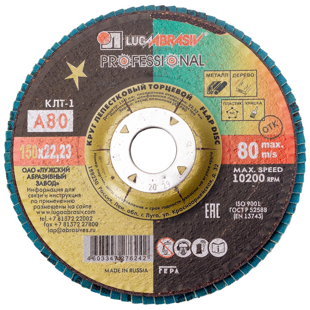 Круг шлифовальный лепестковый Луга, 150х22.2мм, Р80, торцевой