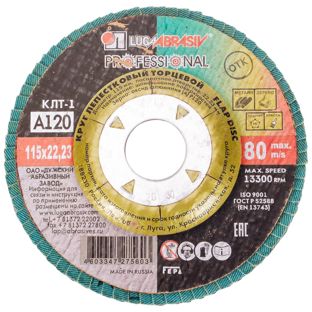 Круг шлифовальный лепестковый Луга, 115х22.2мм, Р120, торцевой