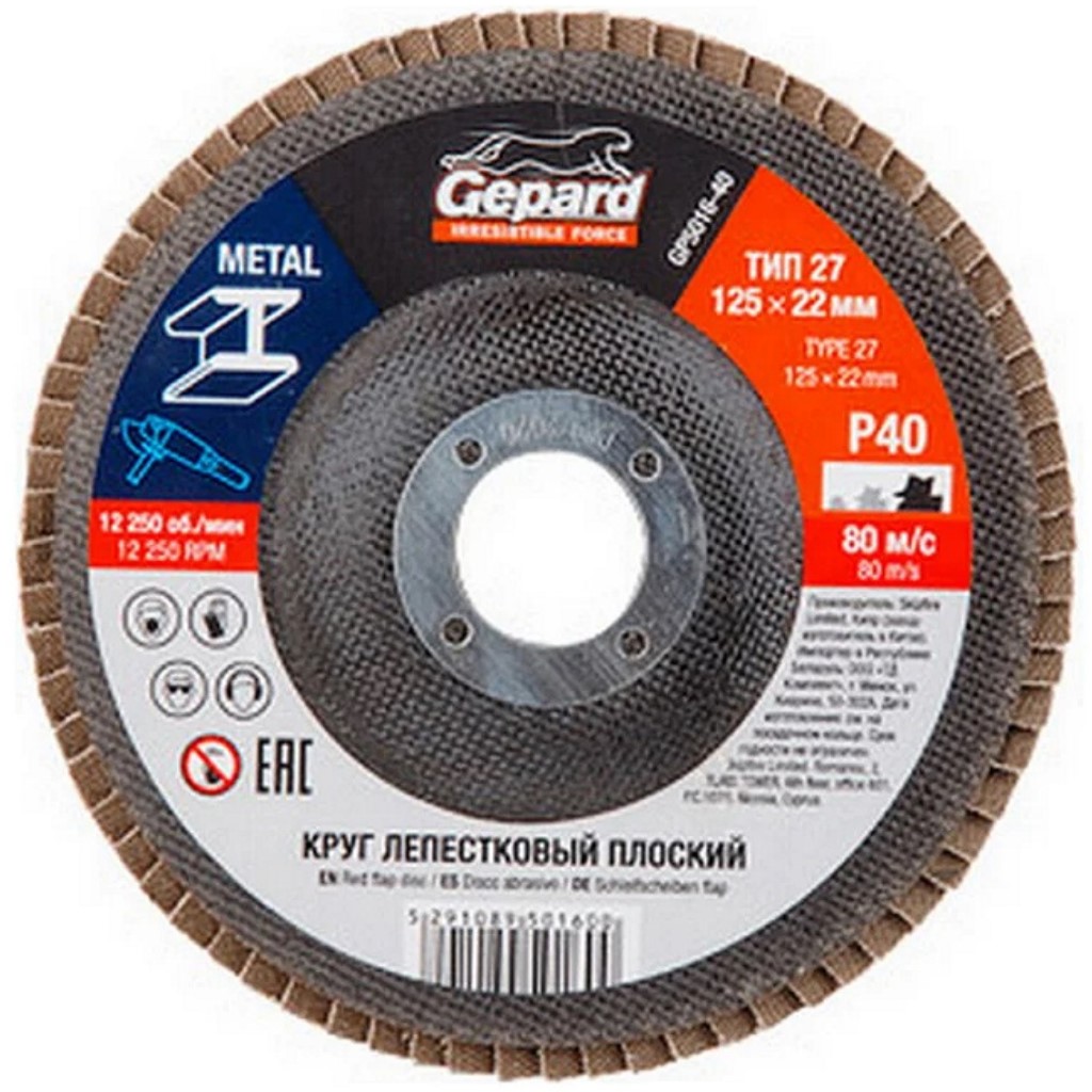 Круг шлифовальный лепестковый Gepard, 125х22.2мм, Р40, плоский