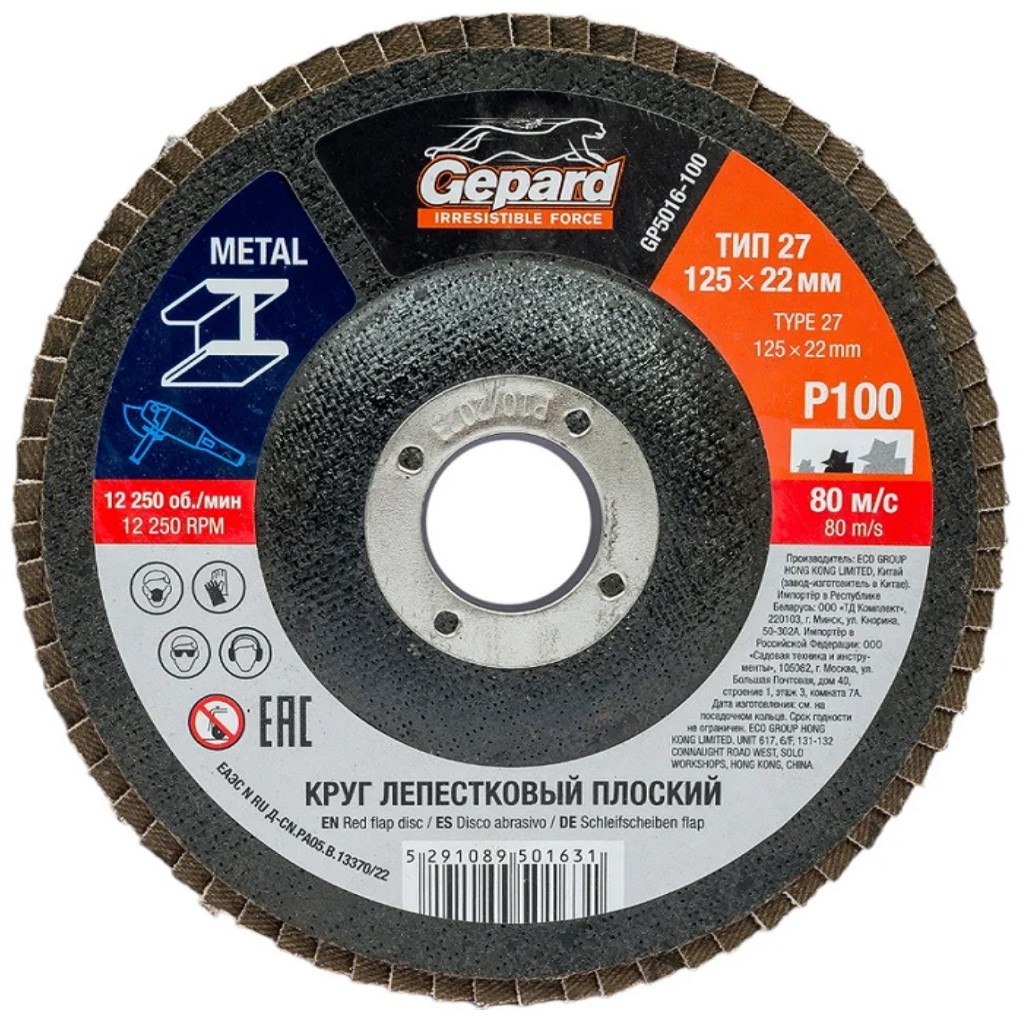 Круг шлифовальный лепестковый Gepard, 125х22.2мм, Р100, плоский