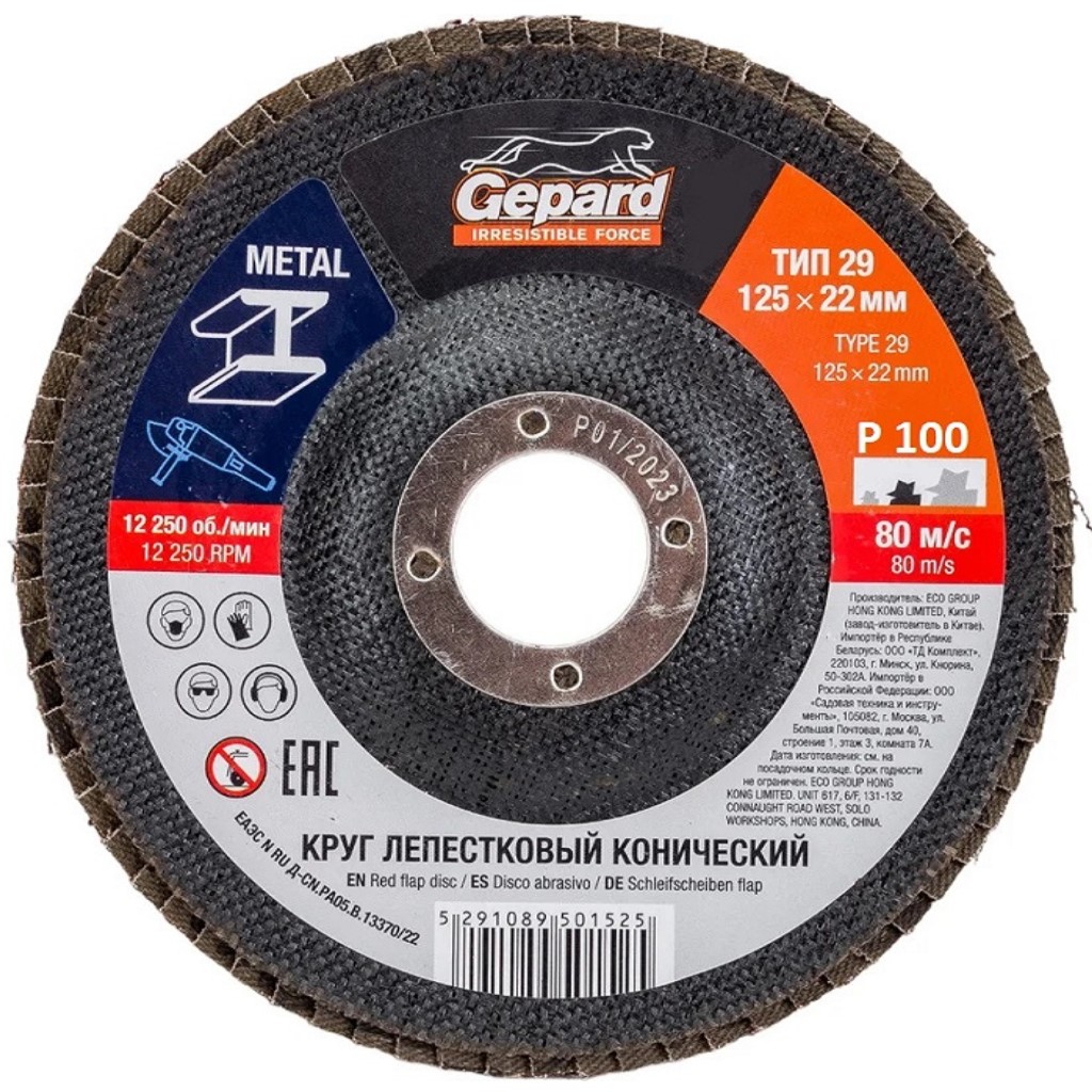 Круг шлифовальный лепестковый Gepard, 125х22.2мм, Р100, конический