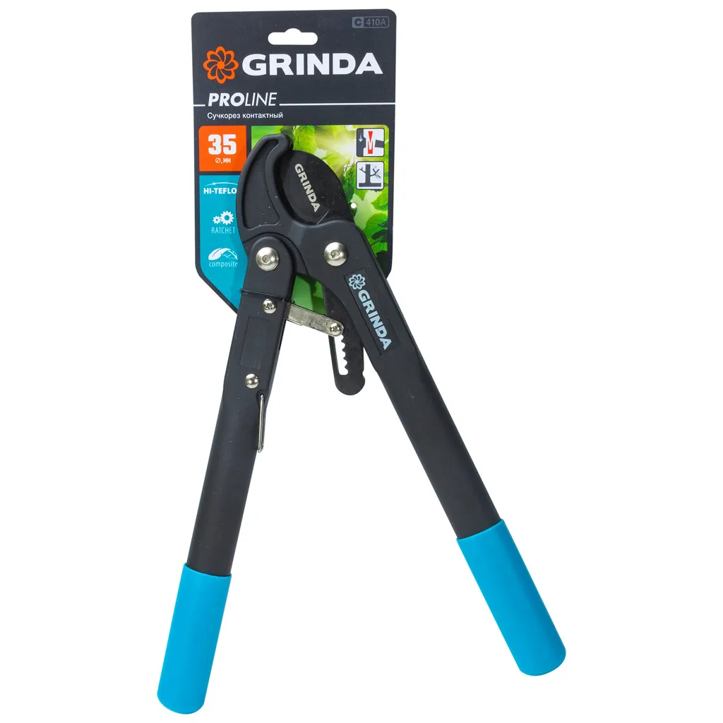 Контактный сучкорез GRINDA C-410A, предназначен для обрезки веток кустарников или деревьев. Лезвие изготовлено из высококачественной углеродистой стали и остро заточено. Лёгкие композитные рукоятки. Защитное тефлоновое покрытие лезвия. Обладают длительным сроком службы, легко режут.