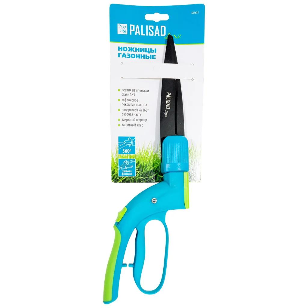 Ножницы газонные Palisad, применяются для подстригания травы вдоль кромок газонов, дорожек, бордюров, ограждений, а также возле кустов. Поворотные на 180° лезвия облегчают работу в труднодоступных мес...