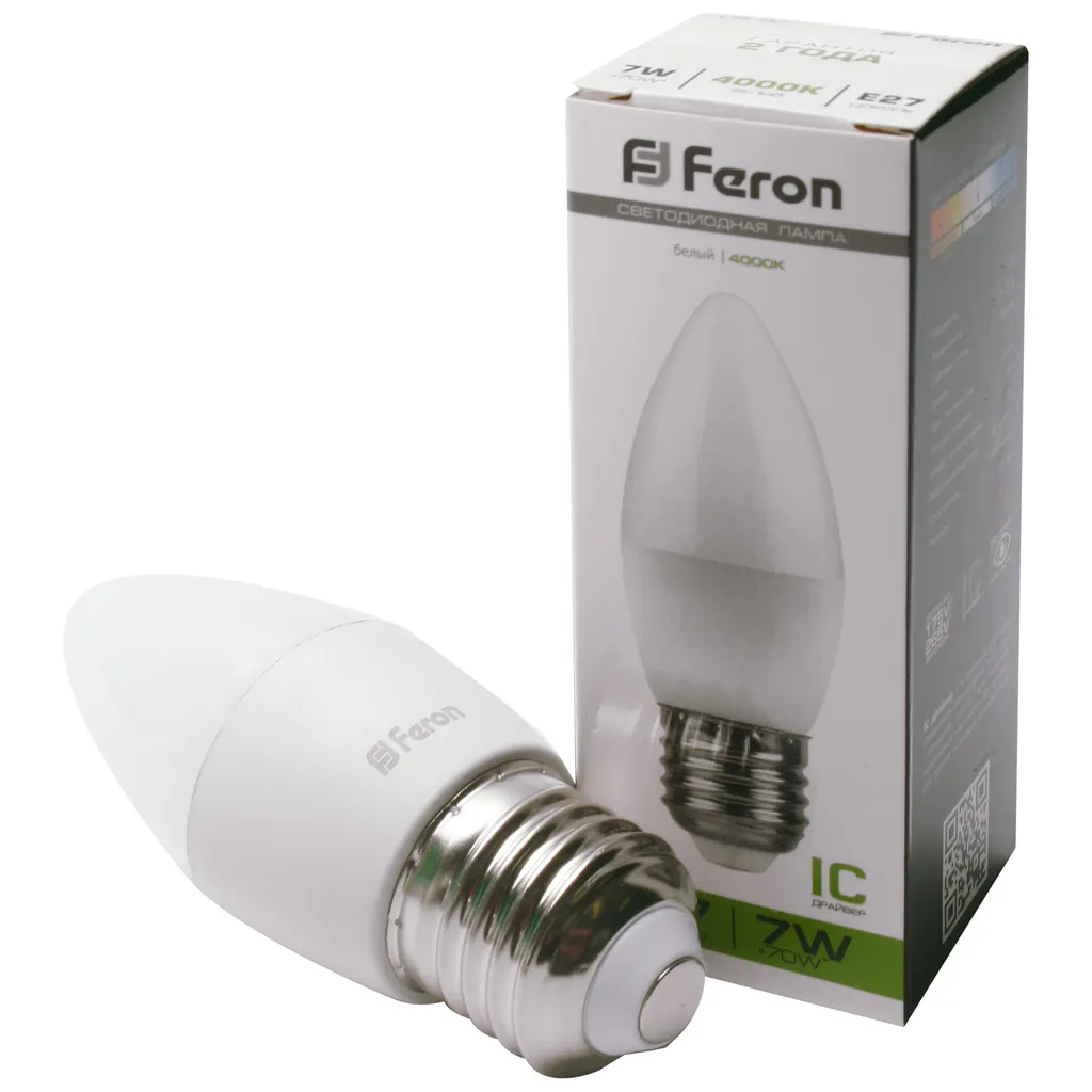 Лампа светодиодная Feron, свеча, 7Вт, Е27, 4000К