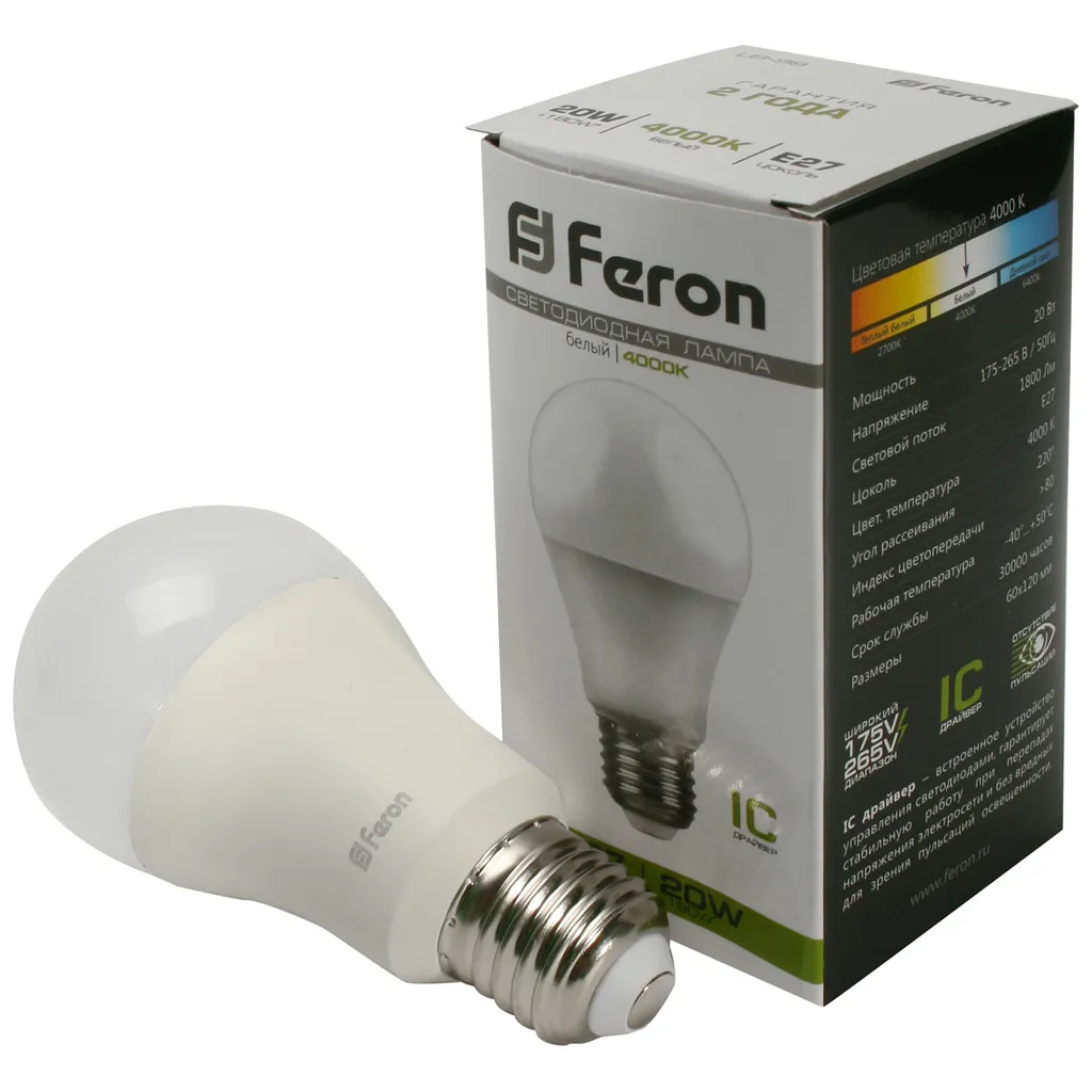 Лампа светодиодная Feron, груша, 20Вт, Е27, 4000К