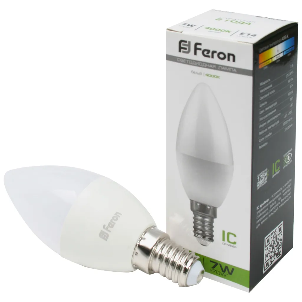Светодиодные лампы Feron подойдут как для домашнего, так и для коммерческого использования. Такой тип освещения прекрасно смотрится в светильниках без плафонов или устанавливается в люстры и бра. Модель обладает широким диапазоном цветовых температур и мощностей, что поможет создать атмосферу тепла и уюта или концентрации. Равномерный спектр света создает зрительный комфорт в любом помещении. Данный тип освещения обеспечивает стабильную работу в течение всего срока службы.