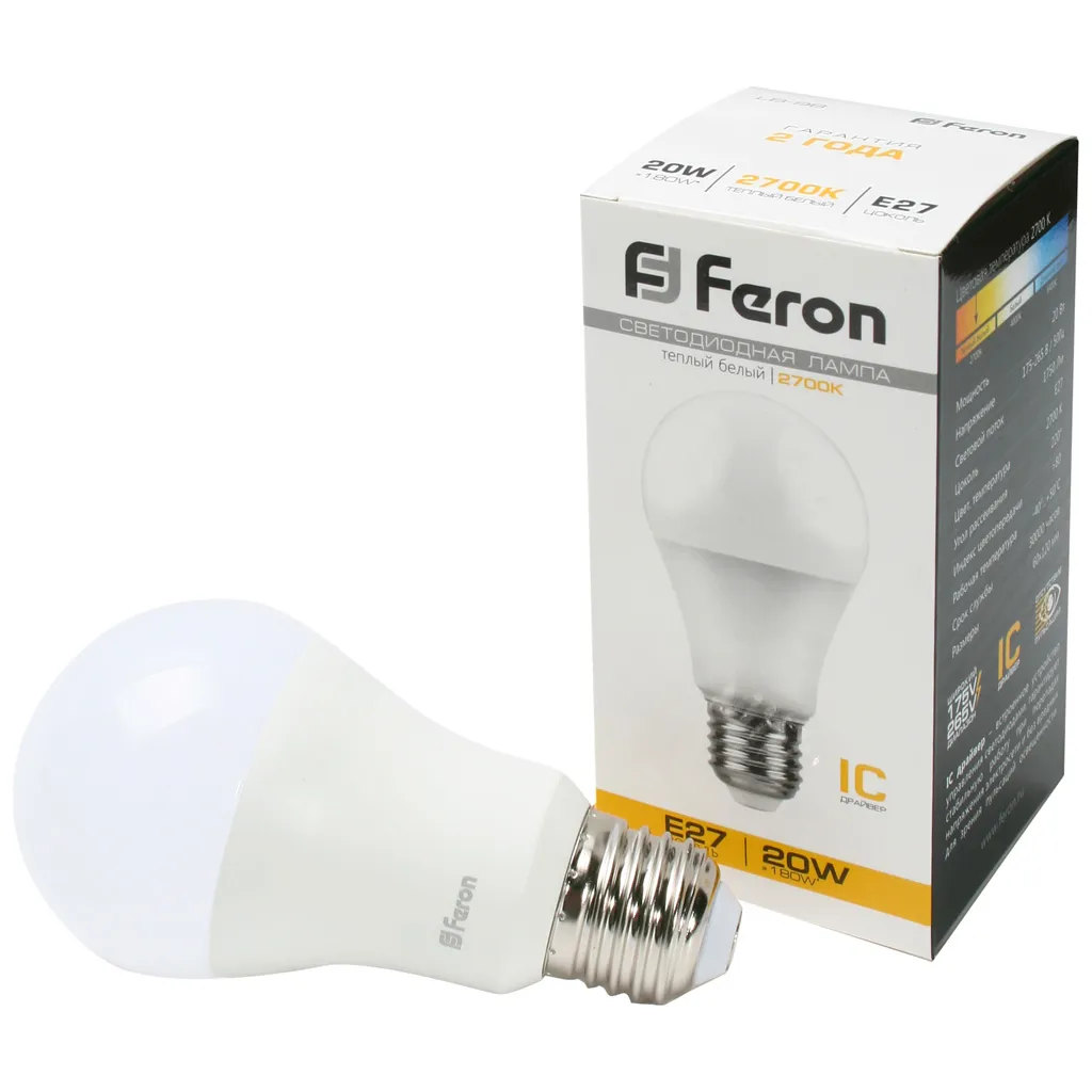 Лампа светодиодная Feron, шар, 20Вт, E27, 2700K