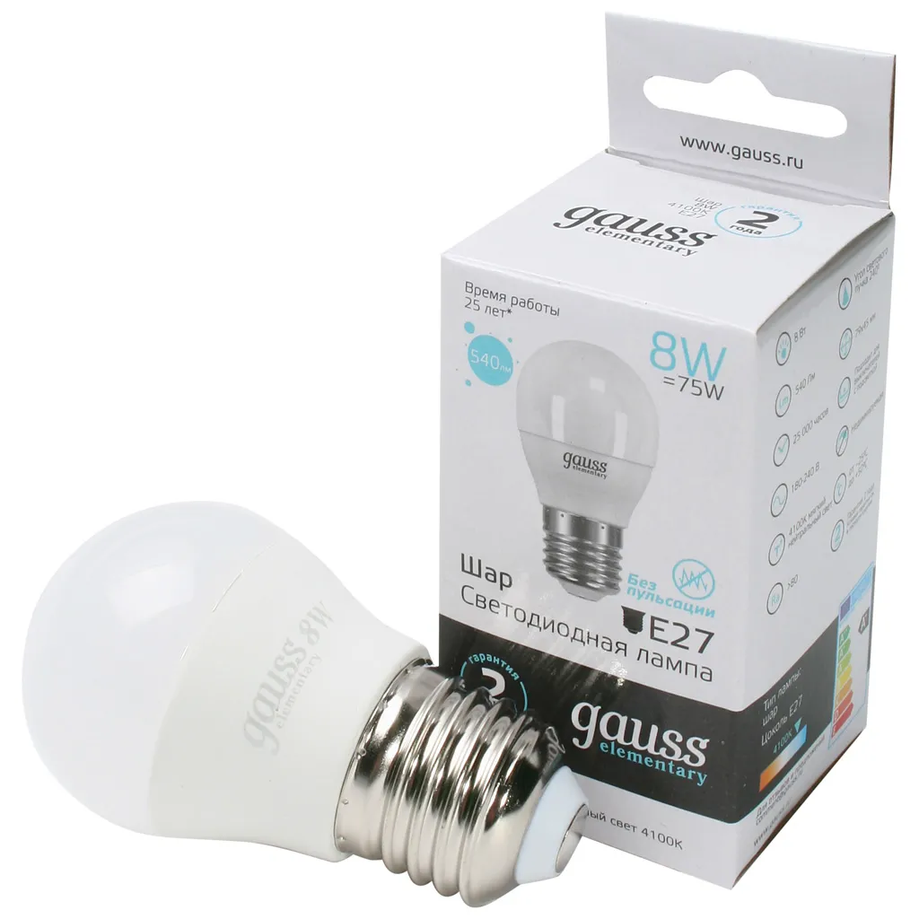 Светодиодные лампы Gauss подойдут как для домашнего, так и для коммерческого использования. Такой тип освещения прекрасно смотрится в светильниках без плафонов или устанавливается в люстры и бра. Модель обладает широким диапазоном цветовых температур и мощностей, что поможет создать атмосферу тепла и уюта или концентрации. Равномерный спектр света создает зрительный комфорт в любом помещении. Данный тип освещения обеспечивает стабильную работу в течение всего срока службы.