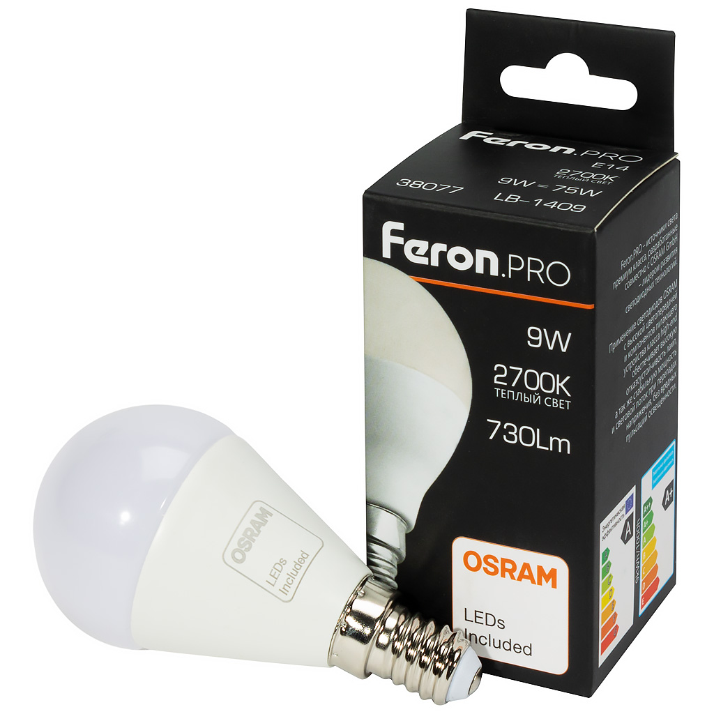 Лампа светодиодная Feron, шар, 9Вт, Е14 2700К