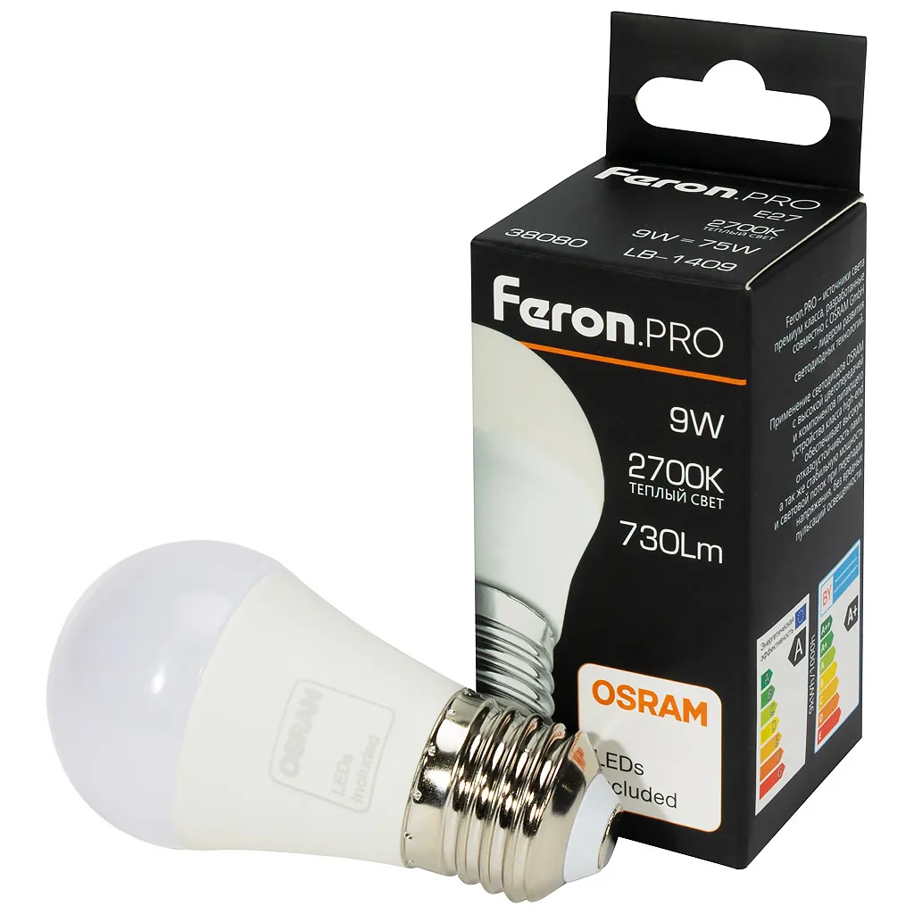 Лампа светодиодная Feron, шар, 9Вт, Е27 2700К.