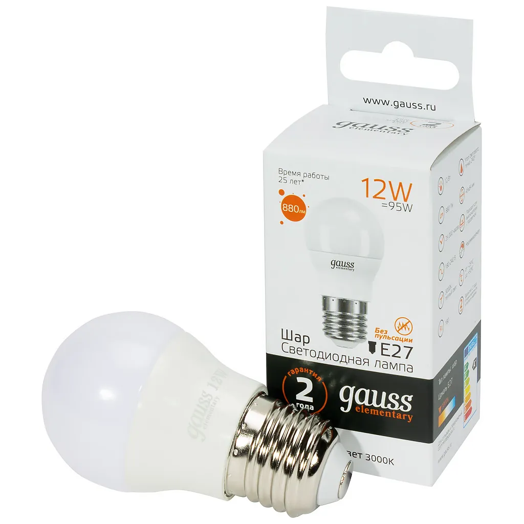 Лампа светодиодная Gauss Elementary, шар, 12Вт, E27 3000K