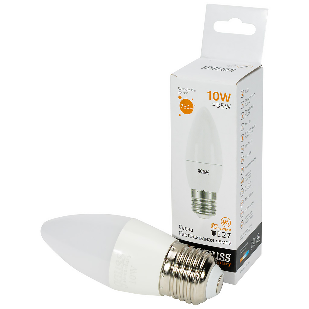 Лампа светодиодная Gauss Elementary, свеча, 10Вт, Е27 3000К