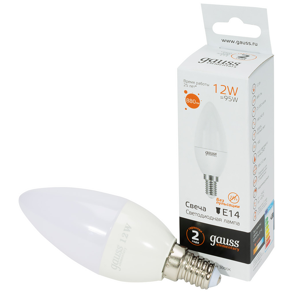 Лампа светодиодная Gauss Elementary, свеча, 12Вт, Е14 3000К