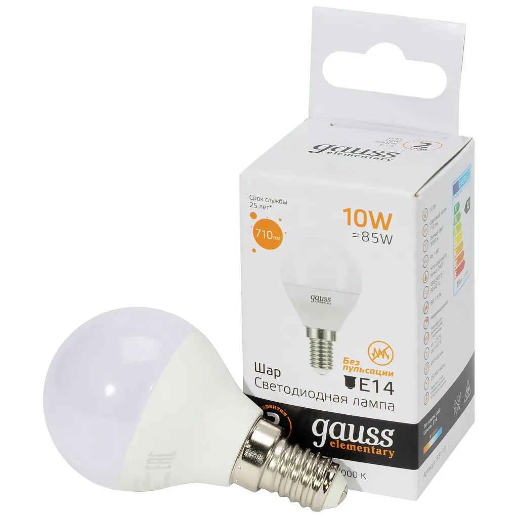Лампа светодиодная Gauss Elementary, шар, 10Вт, E14 3000K