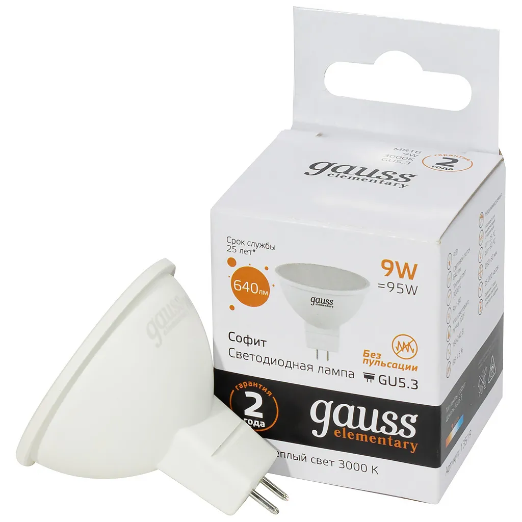 Светодиодные лампы Gauss, MR16 — это современный аналог галогенных ламп накаливания с отражателем. Светодиодные лампы MR16 используются для акцентного освещения и подсветки общественных пространств, арт-объектов, жилых помещений. Они работают во всех типах светильников – встраиваемых, потолочных и точечных, мебельных и светильниках для натяжных потолков.
