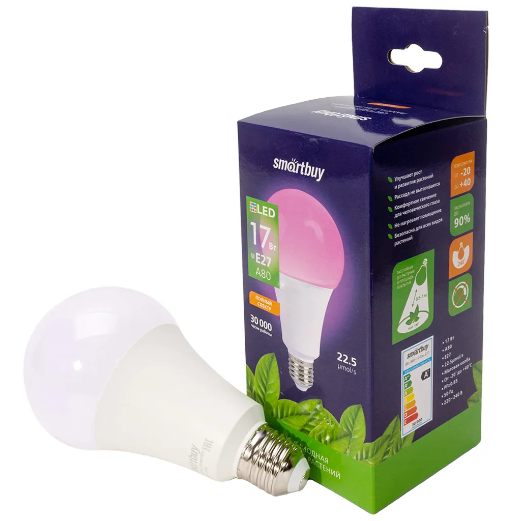 Лампа светодиодная для растений фито, Smartbuy, 17Вт, Е27