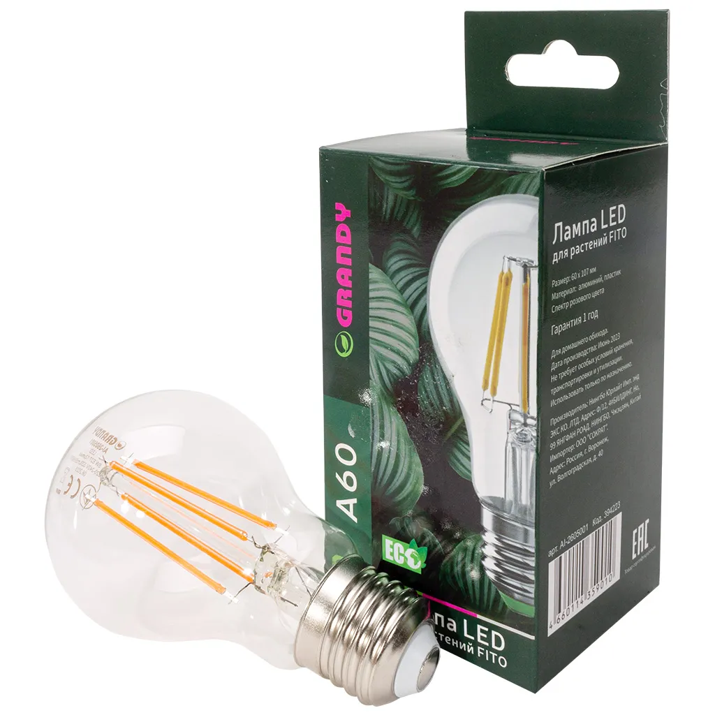 Лампа светодиодная для растений фито, Grandy, груша, 8Вт, Е27