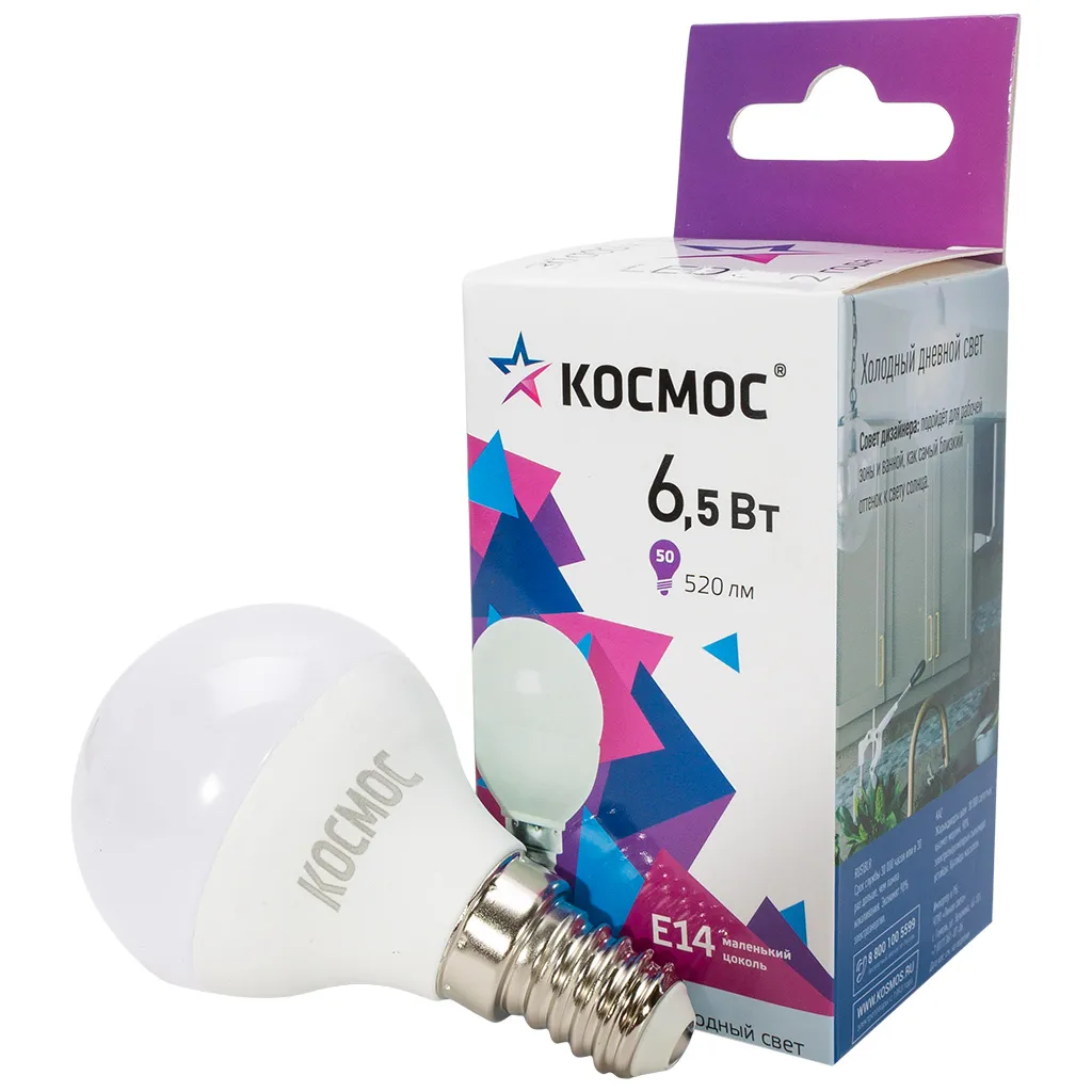 Лампа светодиодная Космос, шар, 6.5Вт, Е14, 6500К