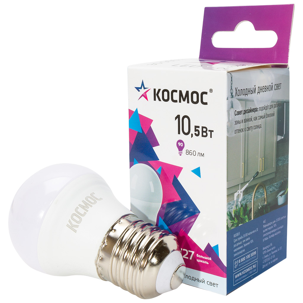 Лампа светодиодная Космос, шар, 10.5Вт, Е27, 6500К