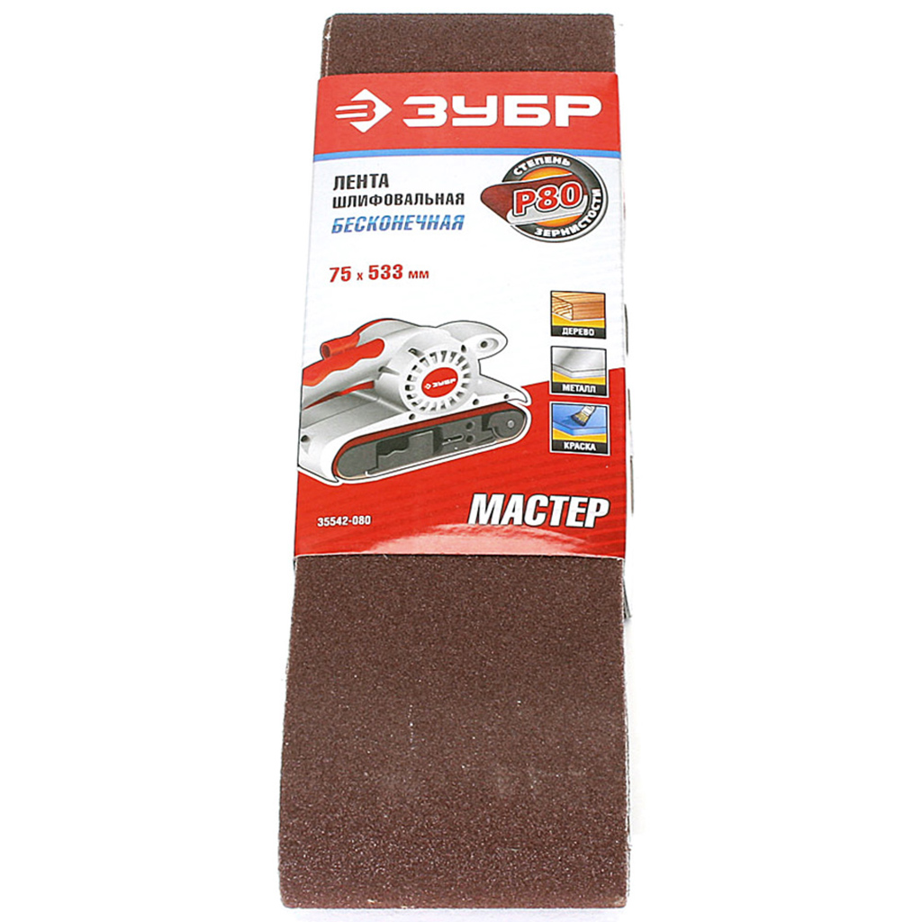 Лента шлифовальная Зубр Мастер, 75х533мм, Р 80, 3шт/упак