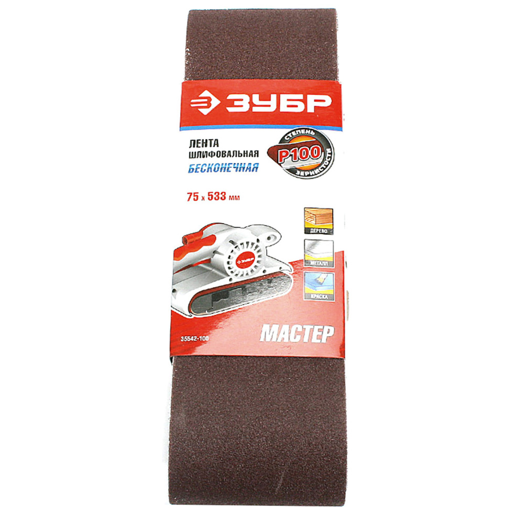 Лента шлифовальная Зубр Мастер, 75х533мм, Р100, 3шт/упак