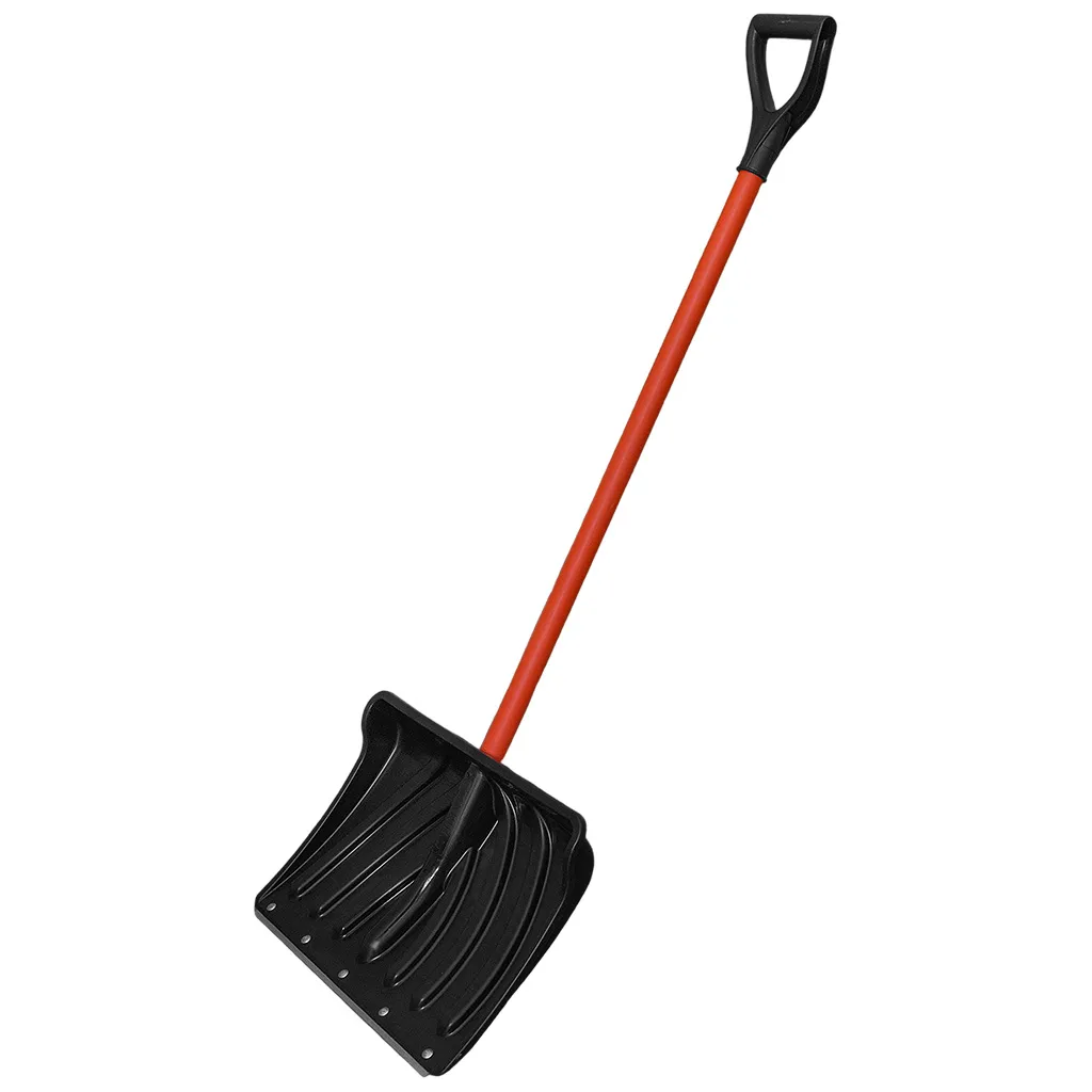 Снеговая лопата имеет прочный металлический черенок с удобной эргономичной V-образной рукояткой.