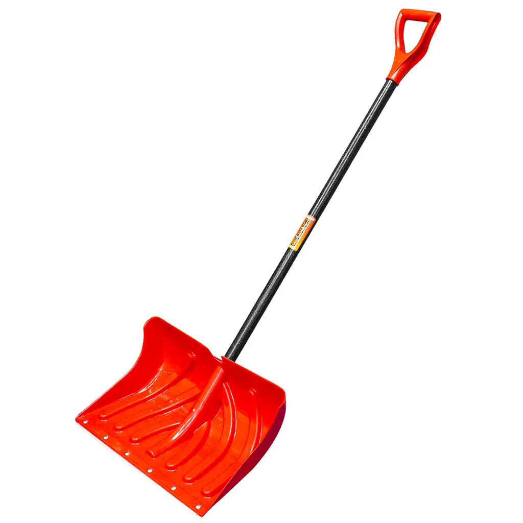 Снеговая лопата имеет прочный фиберглассовый (стеклопластик) черенок с удобной эргономичной V-образной рукояткой.<br>