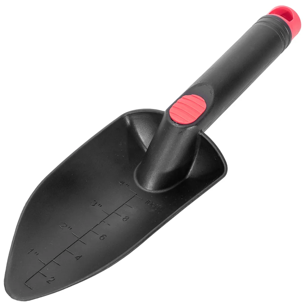 Совок посадочный Feona, применяется при проведении мелких земляных работ на даче или дома. Устойчив к воздействию повышенных и пониженных температур, подлежит заточке, как и металлические, но при этом не ржавеет. Съемная заглушка позволяет удлинить черенок. На совке нанесена мерная шкала. Ширина рабочей части - 280мм.
