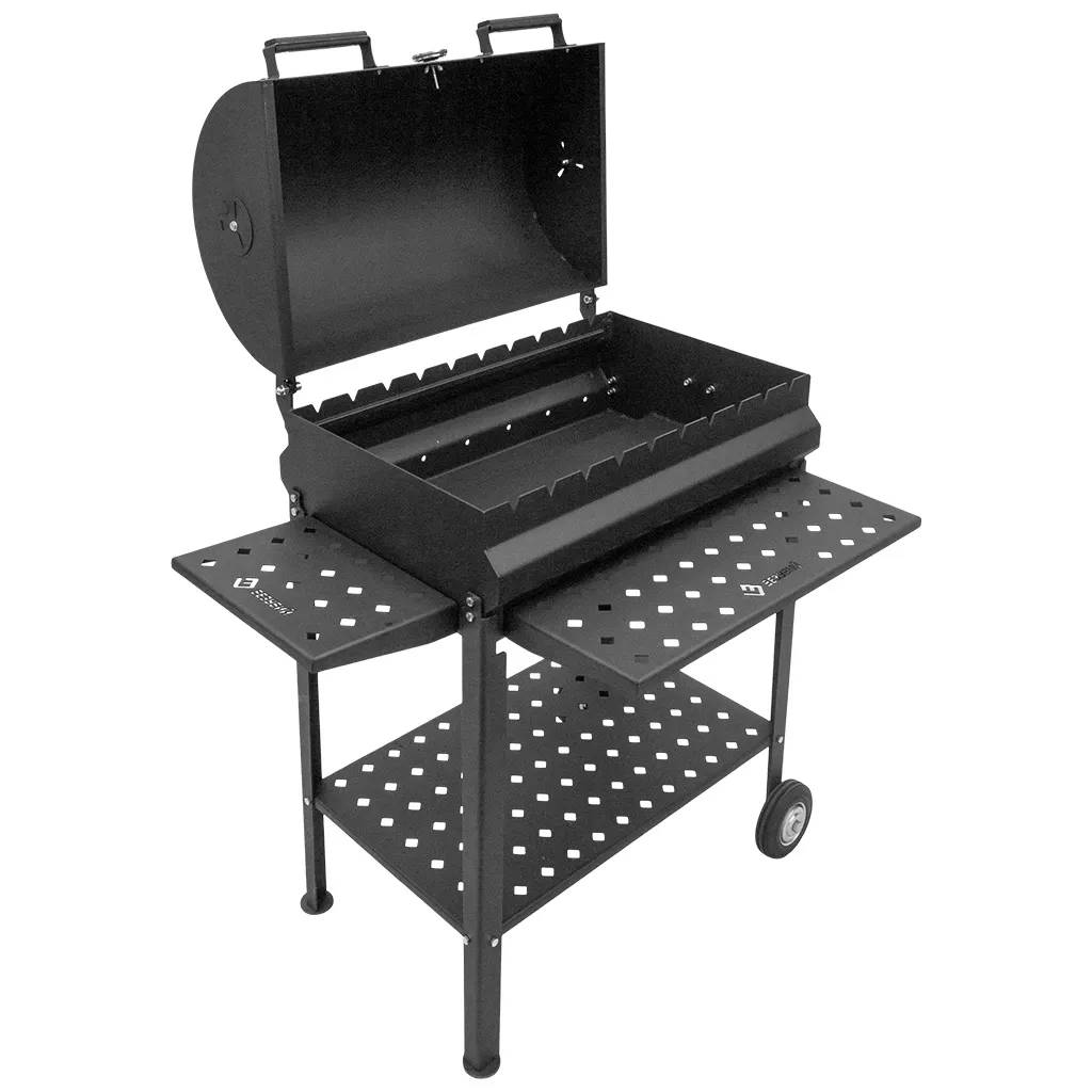 Мангал-гриль Везувий "От Шефа" предназначен для приготовления пищи на открытом воздухе. Мангал рассчитан на 10 посадочных мест под шампуры. Мангал изготовлен из прочной котловой стали (09Г2С) стали, которая обладает устойчивостью к коррозии. Профилированные стенки мангала уменьшают вероятность деформации при нагреве во время работы. Устройство оснащено двумя боковыми столиками и крышкой, которые имеют толщину стали 3 мм. Стальная крышка превращает мангал в полноценный гриль, с возможностью контроля потоков воздуха и готовки под закрытой крышкой. На крышке имеется датчик температуры и клапаны, которые необходимы для регулировки подачи воздуха.