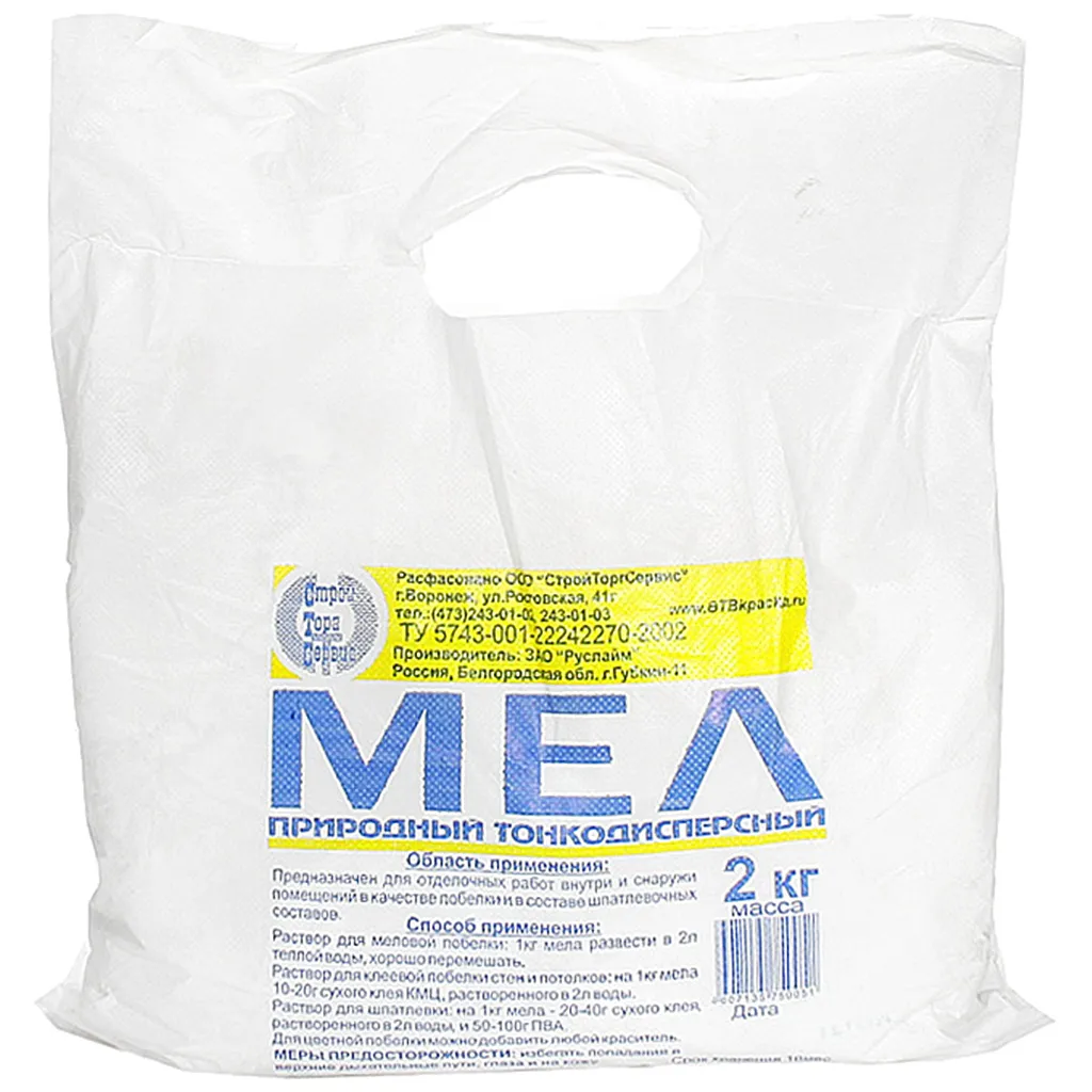 Мел молотый предназначен для отделочных работ внутри и снаружи помещений в качестве побелки и используется в шпатлевочных составах. Для цветной побелки можно добавить любой краситель....