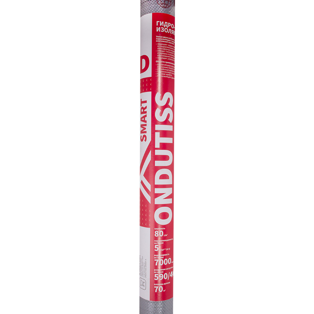 Гидроизоляция Ондутис Смарт - двухслойная гидроизоляционная плёнка серого цвета с интегрированной клеящей лентой, предназначена для защиты неутеплённых кровель с металлическим или иным покрытием, полов влажных помещений, утеплённых цокольных перекрытий, а также для пароизоляции зданий. Значительно снижает риск образования наледи и сосулек, отводя тепловой поток от кровли.