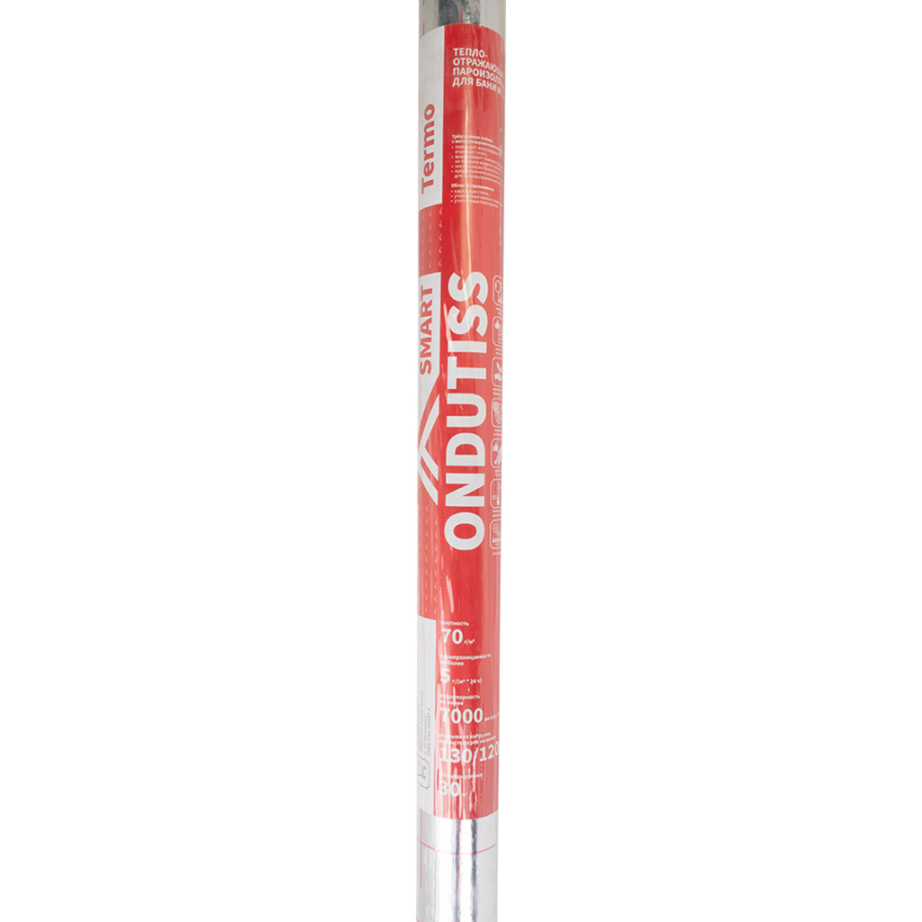 Пароизоляция Ондутис СмартТермо, снижает теплопотери, сохраняет теплоизолирующие свойства утеплителя. Защищает утеплитель и конструкции здания от проникновения водяных паров изнутри помещения. Повышает энергоэффективность, отражает тепло. Защищает внутренние помещения от частиц утеплителя.