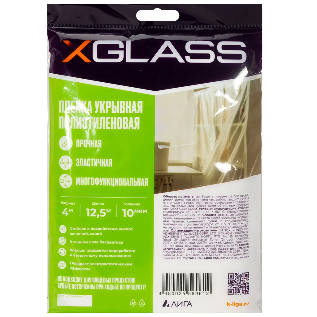 Укрывная пленка X-Glass - применяется для защиты поверхностей от различных загрязнений при проведении ремонтных работ. Представляет из себя тонкое полотно из полиэтилена, сохраняет небольшое статическое электричество и плотно прилегает к любой поверхности.