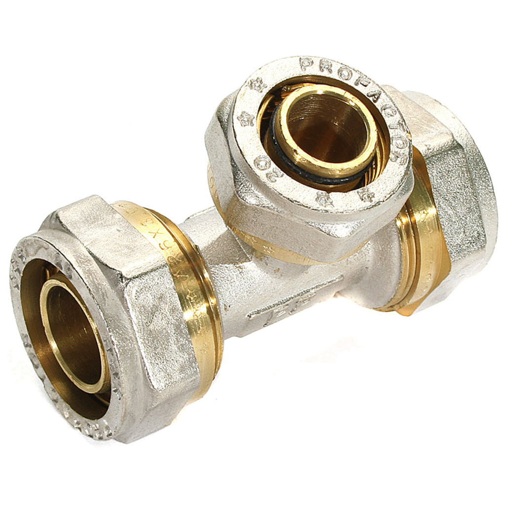 Тройник для металлопластиковой трубы Frap, ДУ26 х ДУ20 х ДУ26 ц-ц-ц.