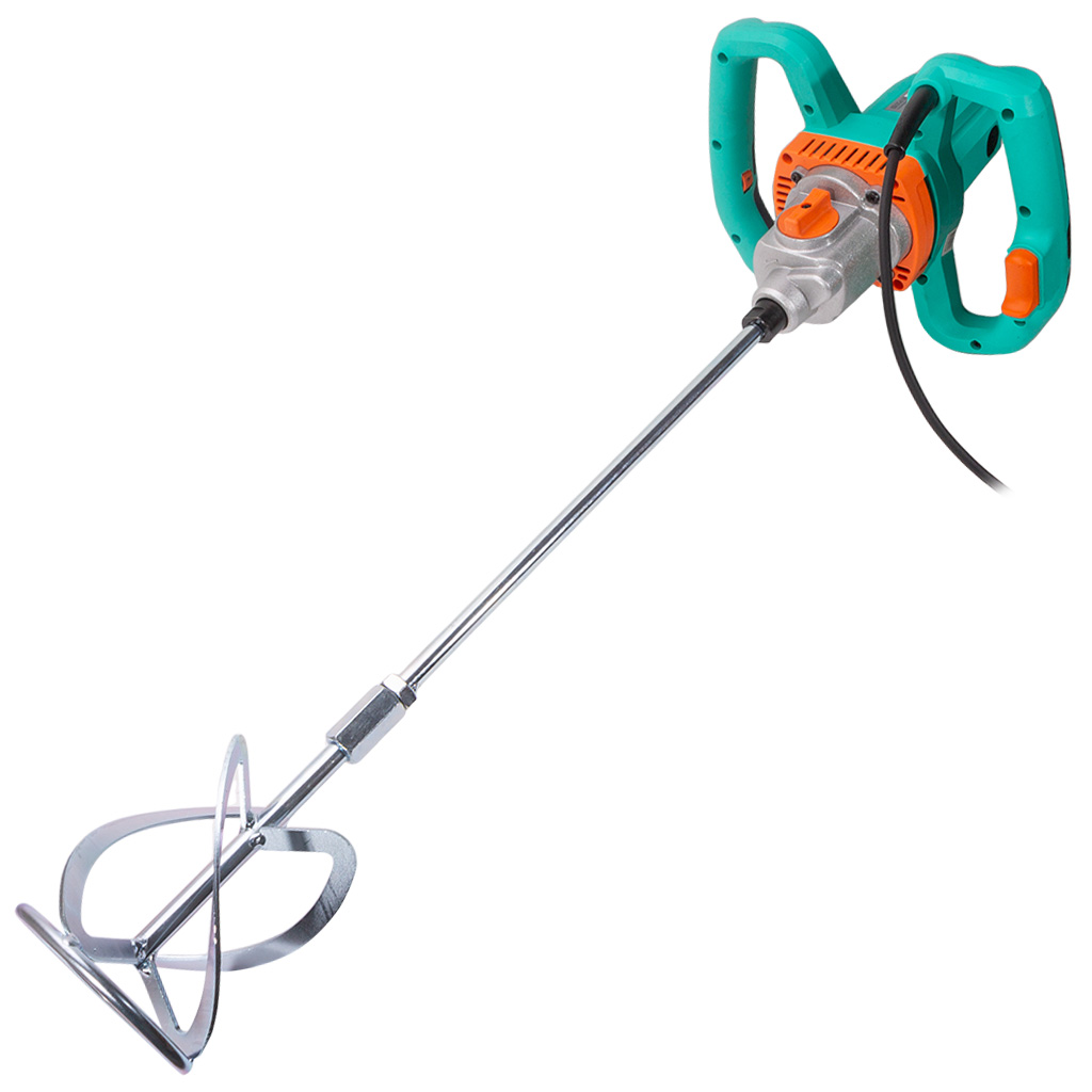 Миксер оснащен плавным пуском, что благоприятствует его долговечности и безопасности в ходе использования. Металлический корпус редуктора предоставляет надежность в использовании при больших нагрузках в ходе перемешивания. Имеет патрон М14, что позволяет устанавливать наиболее распространенные типы насадок. Рукоятки с противоскользящими накладками для уверенного хвата. Благодаря эргономичной конструкции, данной модели, уменьшается нагрузка на руки и спину при работе. Двухскоростной редуктор обеспечивает перемешивание как с высоким моментом, так и с высокой скоростью. Электронная регулировка числа оборотов позволяет начать на минимальных оборотах и настраивать частоту вращения прямо в процессе работы.