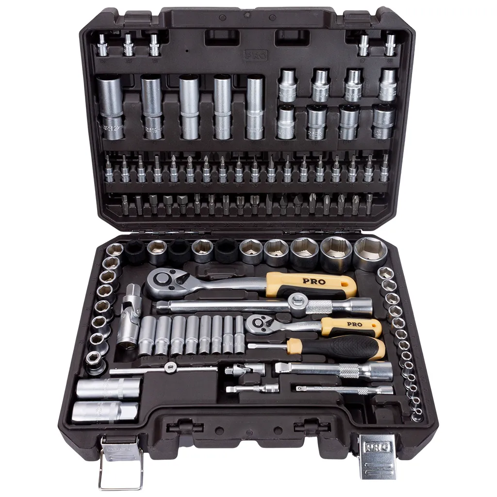 Набор станет надёжным помощником при замене масла, ремонте подвески, обслуживании тормозной системы или сборке мебели. В нём есть всё: набор головок 1/4" и 1/2", включая ударные торцевые головки 1/2" (17, 19, 21 мм), глубокие головки, свечные ключи и расширенный выбор насадок под TORX, HEX, SL, PH, PZ и другие профили. Набор отверток для автомобиля реализован через воротки и держатели с возможностью установки сменных бит. Также включён набор шестигранных ключей и все необходимые аксессуары для работы в труднодоступных местах.