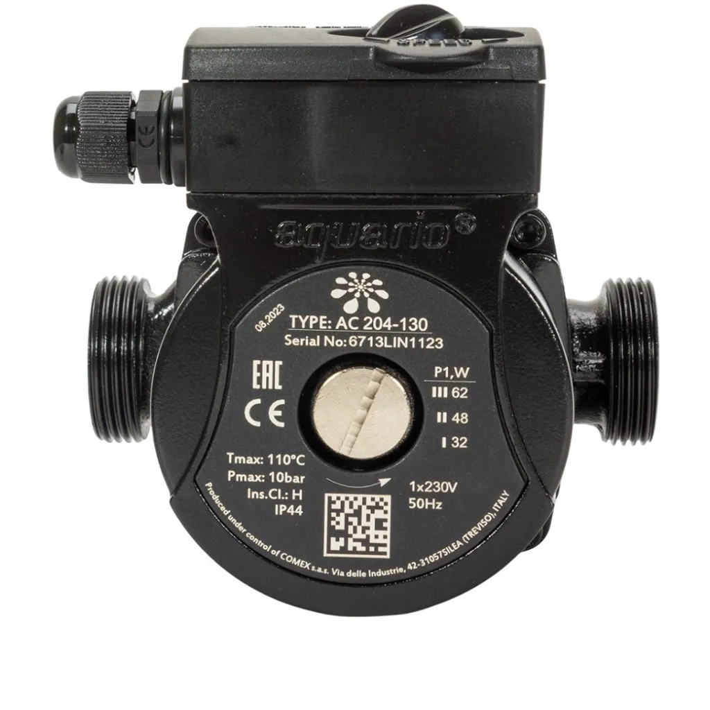 Циркуляционные насосы Aquario серии АС представляют собой насосы с «мокрым» ротором, т. е. ротор двигателя во время работы омывается и смазывается перекачиваемой жидкостью. Входной и выходной патрубки насоса расположены на одной оси (насос монтируется непосредственно в разрыв трубопровода). Для выбора наиболее оптимального режима насос имеет три скорости работы, которые можно устанавливать при помощи переключателя, расположенного на клеммной коробке насоса.