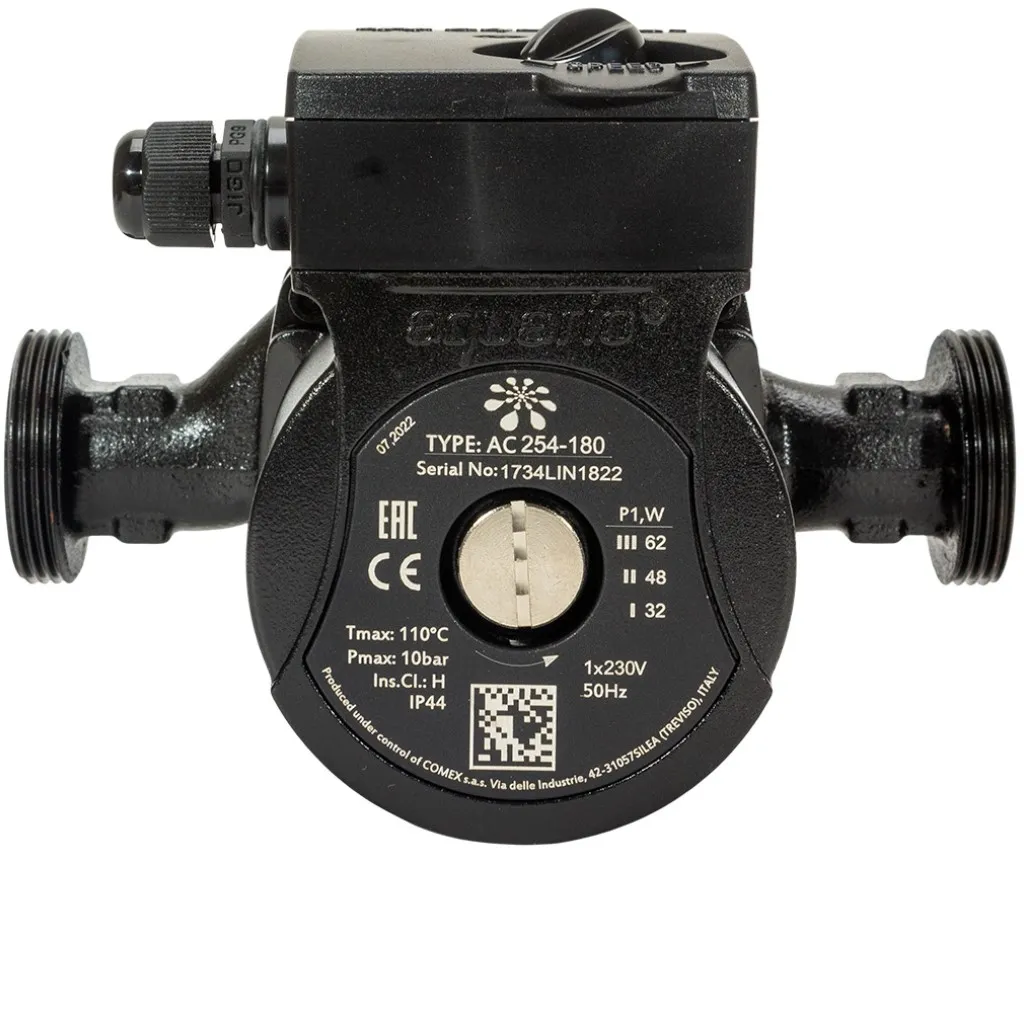 Циркуляционные насосы Aquario серии АС представляют собой насосы с «мокрым» ротором, т. е. ротор двигателя во время работы омывается и смазывается перекачиваемой жидкостью. Входной и выходной патрубки насоса расположены на одной оси (насос монтируется непосредственно в разрыв трубопровода). Для выбора наиболее оптимального режима насос имеет три скорости работы, которые можно устанавливать при помощи переключателя, расположенного на клеммной коробке насоса.