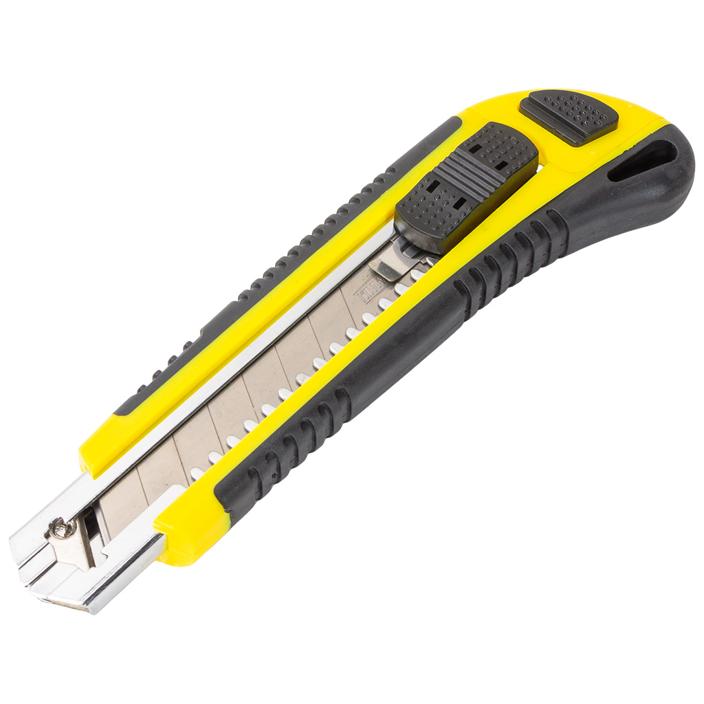 Нож сегментированный Kinwehr, обрезиненный с фиксатором и автозаменой, 18мм