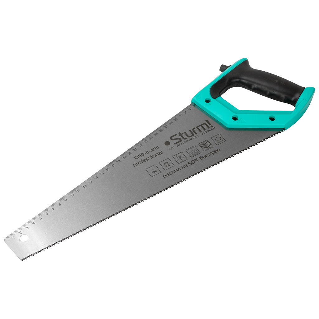 Трёхгранная заточка зуба обеспечивает ровный и быстрый распил при минимальных усилиях. Закалённый до 60HRC зуб длительное время сохраняет свою заточку. Антикоррозийное полимерное покрытие защищает полотно от воздействия влаги. Эргономичная обрезиненная рукоятка комфортно лежит в руке и обеспечивает полный контроль инструмента. Пластиковый защитный кожух защищает от случайных порезов.