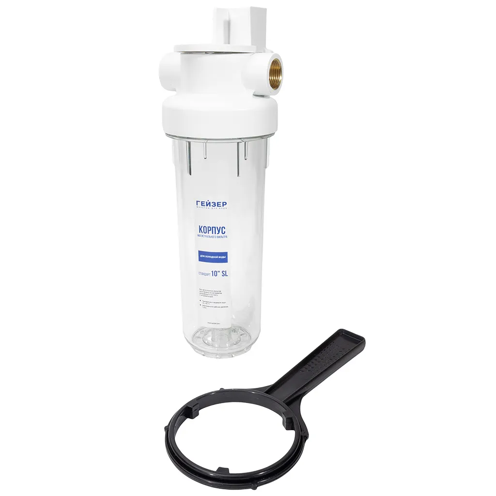Магистральный фильтр для холодной воды Гейзер Н10В-10SL, внутренняя резьба 3/4", прозрачный