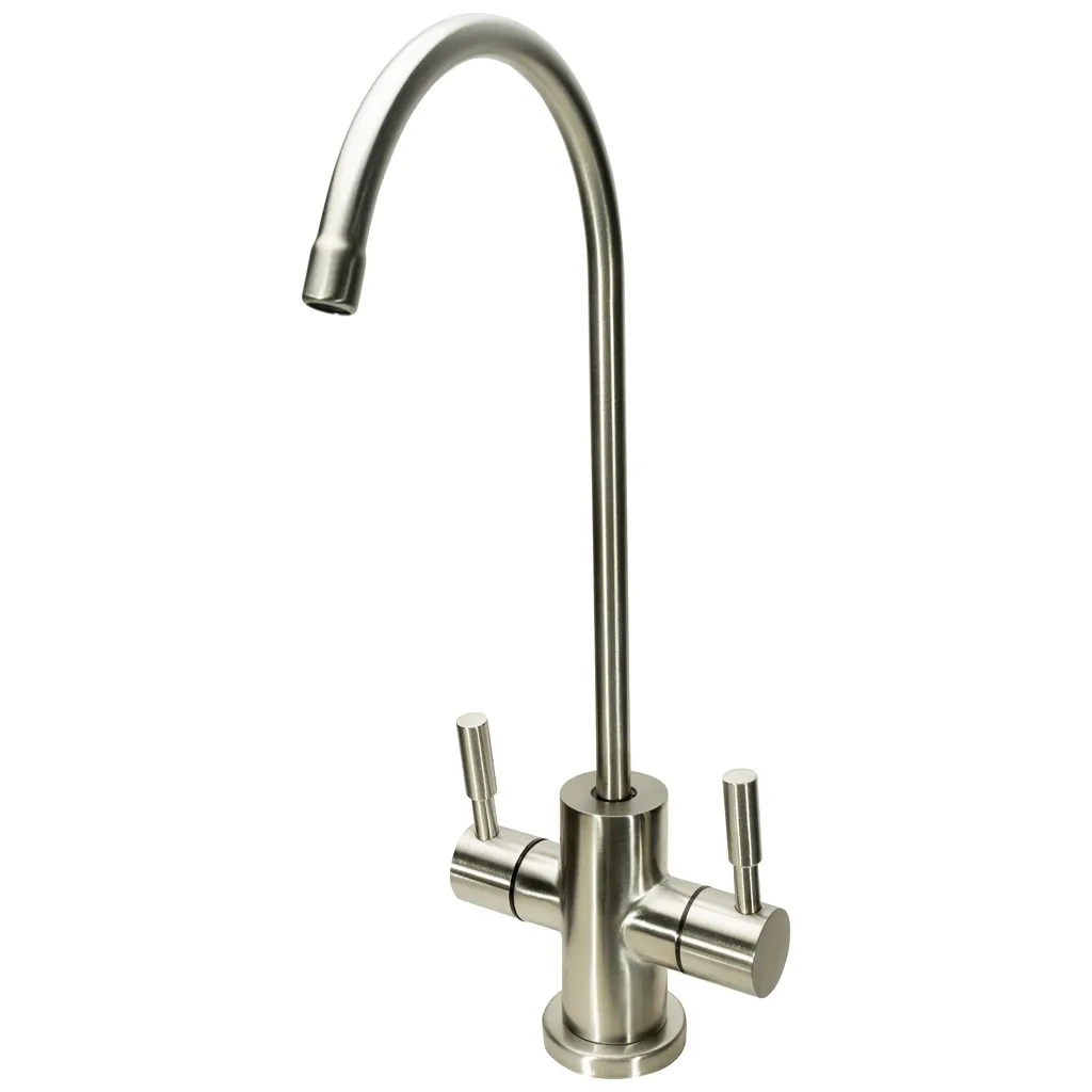 Кран Аквабрайт АБФ-КР-2, используется в многоступенчатых питьевых системах очистки воды АБФ-ТРИА и системе с обратным осмосом АБФ-ОСМО-6 или аналогов, в которых есть ступень минерализации. Один вентиль подаёт очищенную воду, а второй подаёт обогащенную минералами.