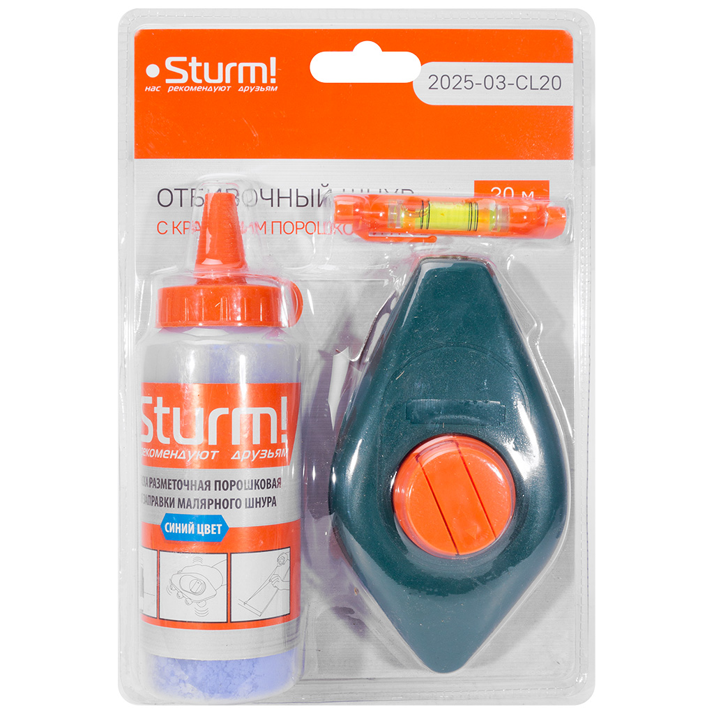Шнур разметочный Sturm! 2025-03-CL20, красящий порошок, уровень, 20м