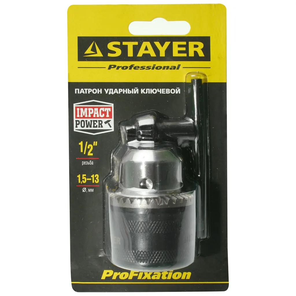 Патрон Stayer, применяется для зажима сверл, буров, концевых фрез и другого режущего инструмента с цилиндрическим, трёх- и шестиuранным хвостовиком во всех типах ударных электрических, акrумуляторных и ручных дрелей с посадочной резьбой 1/2″.