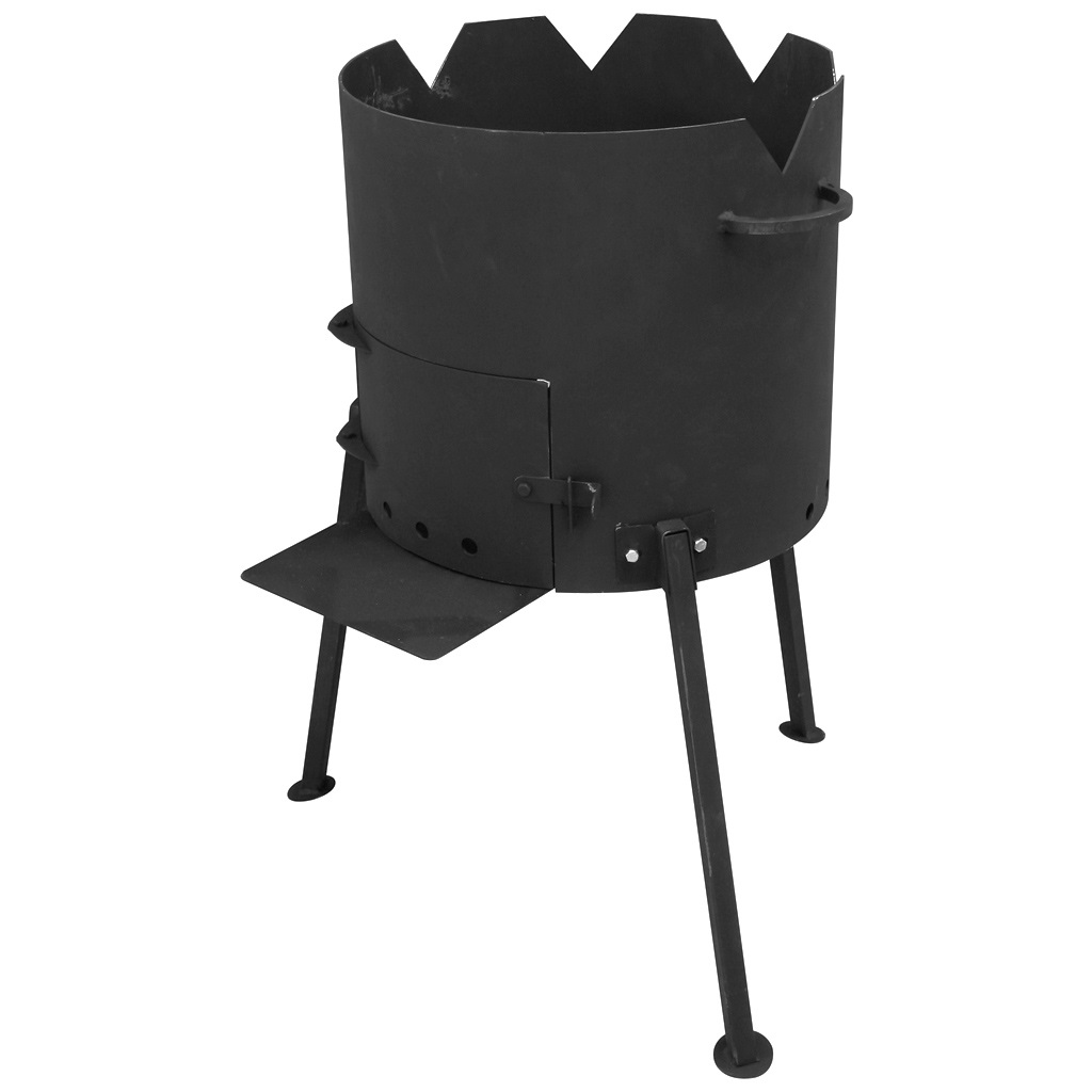 • Разборные ножки имеют плоское монтажное основание. Печь с казаном на 3 точках опоры будут ровно стоять на земле и не углубляться.