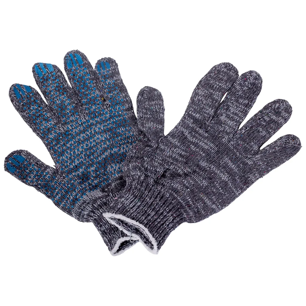 Вязаные ХБ перчатки с точечным ПВХ напылением на ладонной части являются средством защиты рук при проведении строительных, садовых, сборочных и других видов работ. Точечное ПВХ покрытие обладает анти...