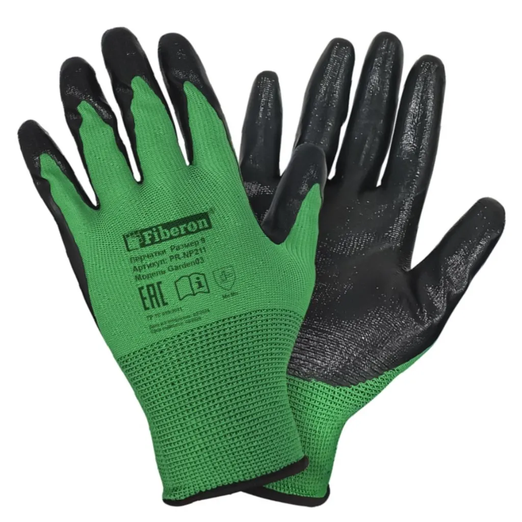 Перчатки Fiberon Садовые работы, полиэстер, нитриловое покрытие